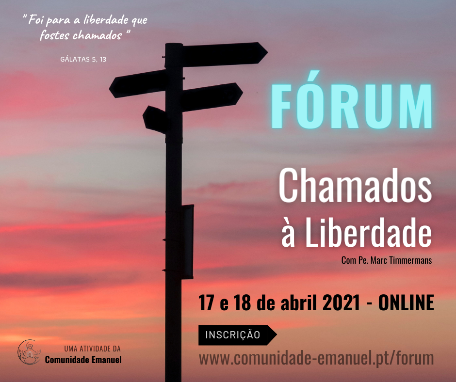 Vai realizar-se, nos dias 17 e 18 de abril de 2021, mais um Fórum, organizado e animado pela Comunidade Emanuel. Este ano, será online, o que, não nos permitindo o contacto fraterno próximo, permitirá a participação de pessoas de qualquer parte do mundo! Inspirados na palavra de S. Paulo, “Foi para a liberdade que fostes chamados”, o tema geral será “Chamados à Liberdade”.